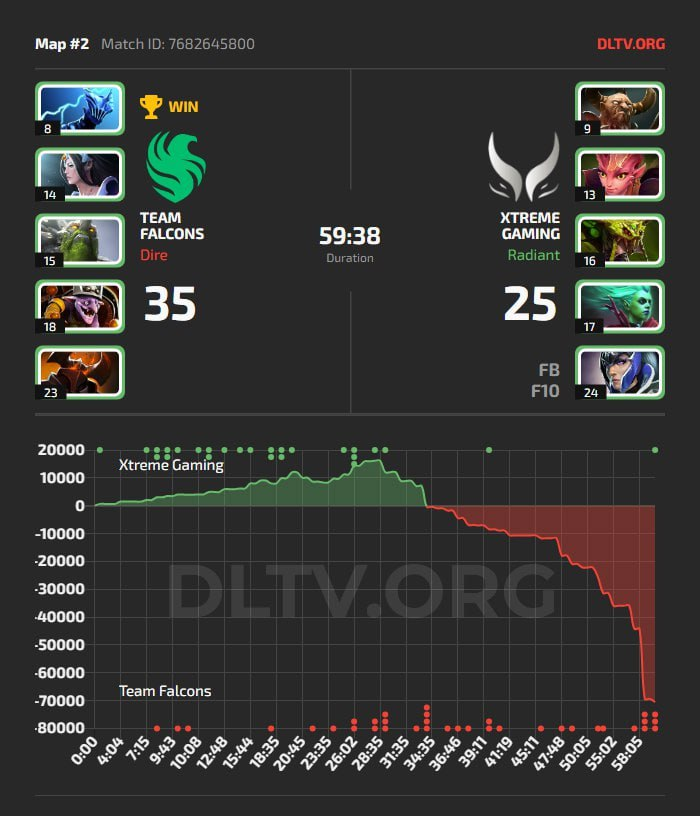 In the crucial Roshan fight, Team Falcons showed superior team coordination and took firm control over the game. The Falcons took their sweet time, farming the map and building an insurmountable net worth advantage before finally ending the game in the 60th minute.