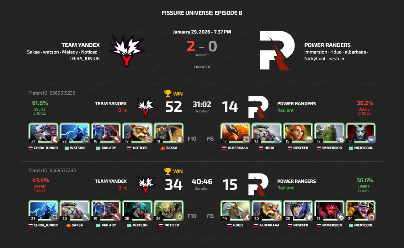 Team Yandex пощелкали Power Rangers, как орешки. Для чемпионов последнего Blast Slam V ex-Runa Team оказались легким соперником. Malady На сигнатурном Jakiro сыграл на первой без смертей, а на второй показал наибольший процент участия в убийствах - 71%.
