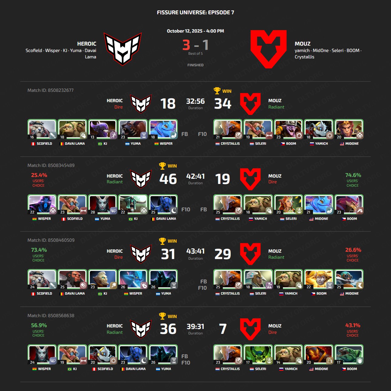 Финал завершился со счётом 3-1 в пользу Heroic. Винстрик Crystallis был прерван, тем не менее, для MOUZ обойти Team Liquid и Nigma Galaxy, а также на равных сразиться с праймовыми Heroic — это результат выше всяких похвал.