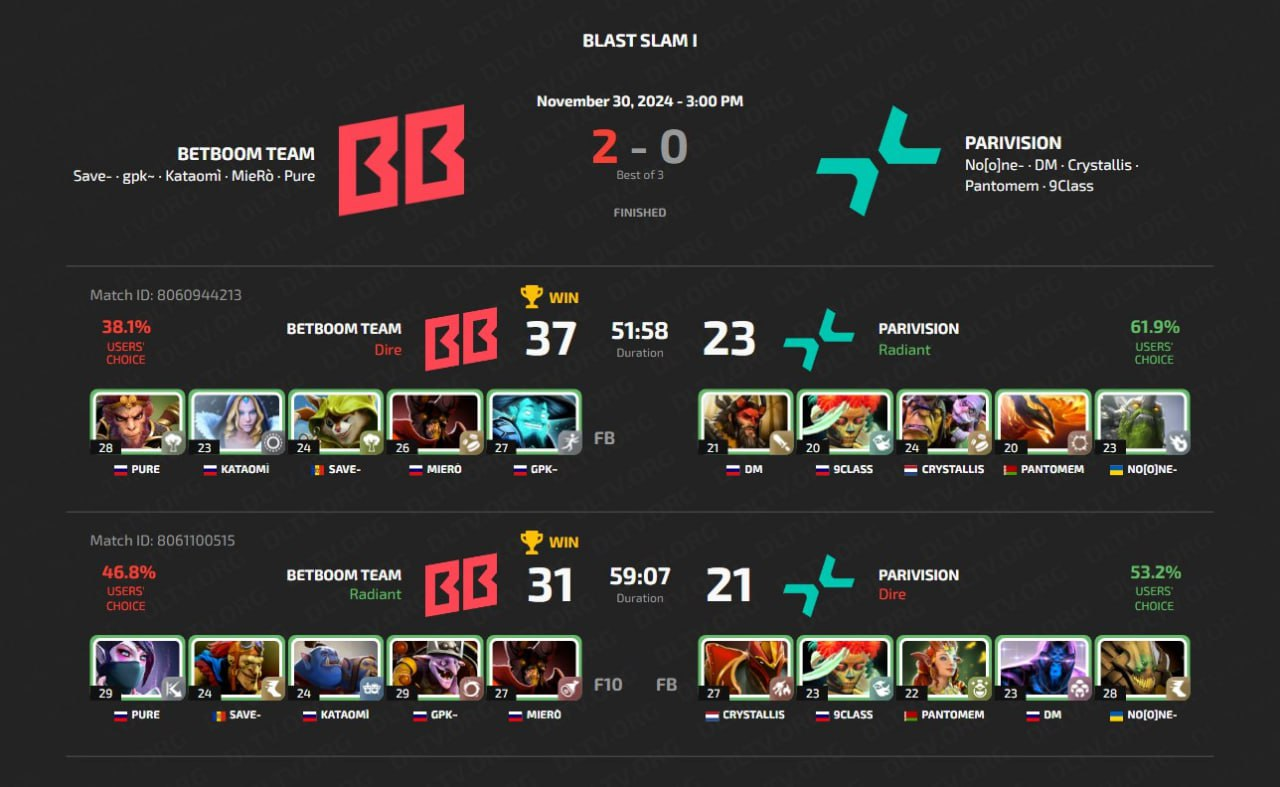The BetBoom Team only had to defeat PARIVISION to secure a minimum of a second-place finish. The first map of the series was a comeback after the BetBoom Team took a flawless exchange in the top lane.