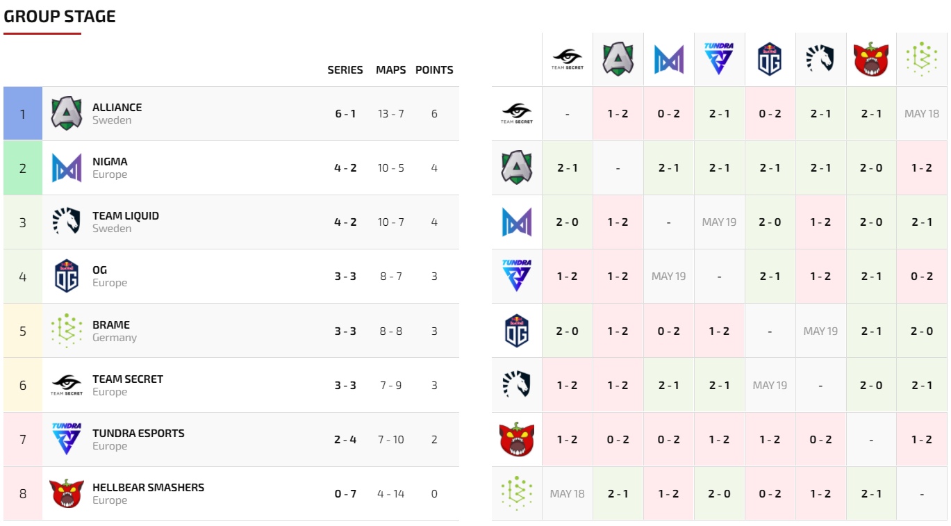 На прошлой неделе в регионе завершилось несколько важных матчей. Во-первых, Team Secret обыграла Team Liquid и сохранила шансы закончить лигу в четверке сильнейших и отправиться на второй мейджор сезона. Во-вторых, OG со счетом 0:2 проиграла против Nigma, чем сильно усложнила себе выход на мейджор,