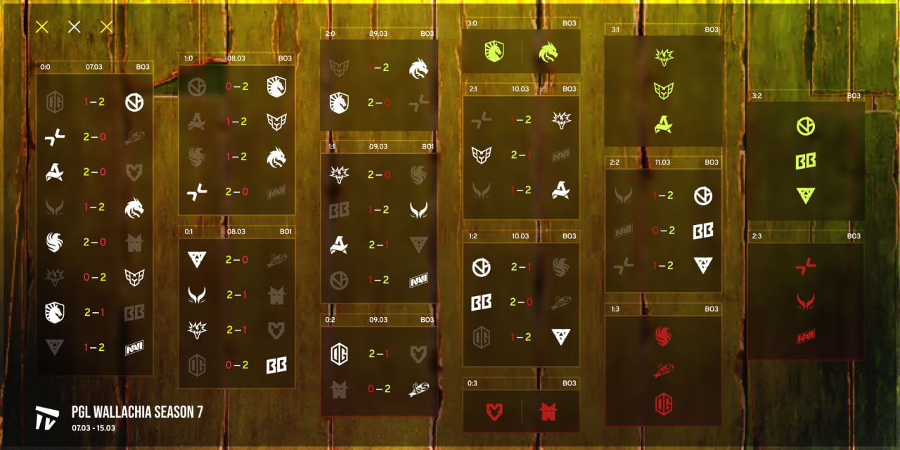 Групповая стадия PGL Wallachia Season 7 в формате швейцарской сетки завершилась. Xtreme Gaming, PARIVISION и Natus Vincere проиграли в последнем матче и покинули турнир. Vici Gaming, BetBoom Team и Tundra Esports вышли в плей-офф